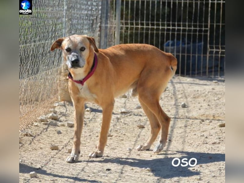 Oso wird nach positiver Vorkontrolle mit Schutzvertrag entwurmt, gechipt, geimpft, kastriert und auf Mittelmeerkrankheiten getestet in liebevolle Hände vermittelt.