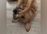 Ein Hof mit mehren Hunden wäre ideal für ihn. Im Rudel ist er völlig unterwürfig und spielt super schön mit den anderen Hunden.