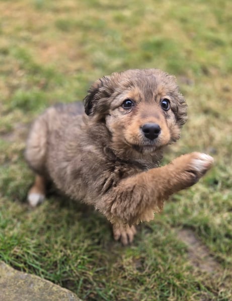 Ich bin welpentypisch verspielt, neugierig und verschmust, muss aber natürlich noch alles lernen, was zum Familienhund dazugehört.