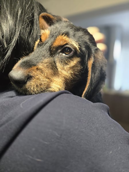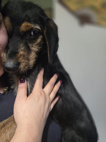 Sie ist offen im Kontakt, mag Streicheleinheiten und ist junghundtypisch verspielt.