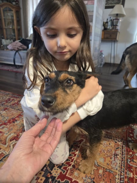 Masha lebt seither in einem Haushalt mit weiteren Hunden. Sie kennt also das Leben im Haus und mit Familienanschluss. Mit der kleinen Tochter der Pflegestelle versteht sich Masha gut.