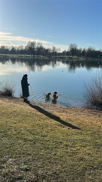 Sein Glück findet er draußen bei ausgiebigen Spaziergängen und besonders im Wasser. Baden liebt Taco über alles – und er taucht dabei sogar begeistert mit dem ganzen Kopf unter! Seine neugierige und lebensfrohe Art macht jeden gemeinsamen Moment zu etwas Besonderem.