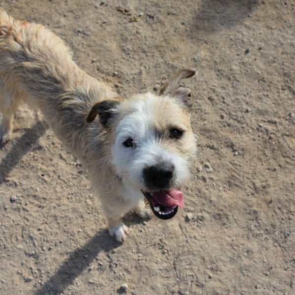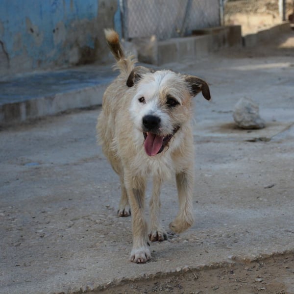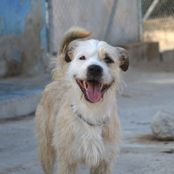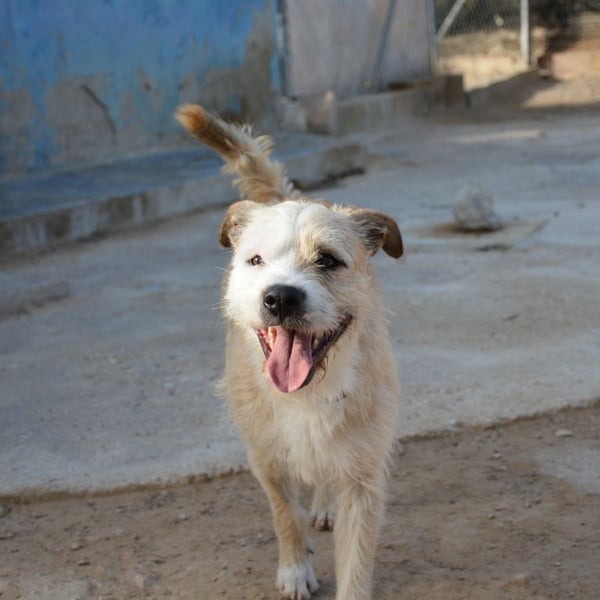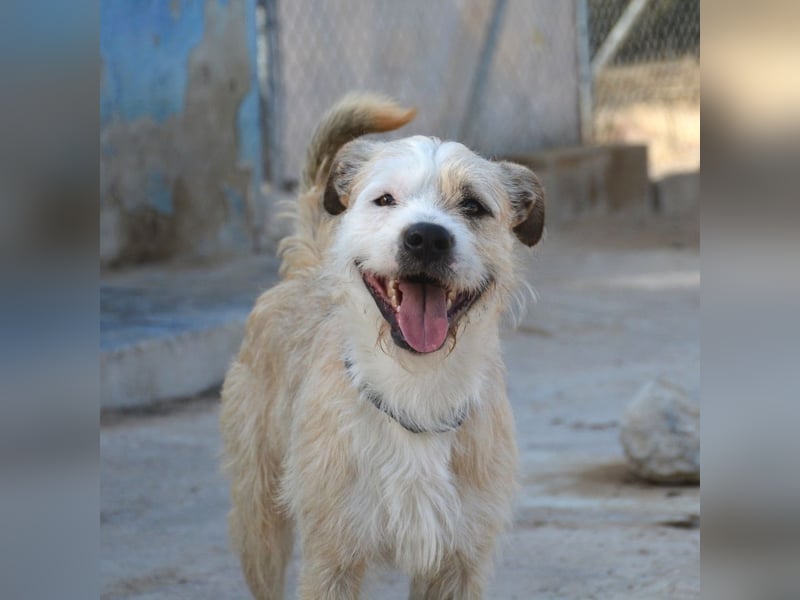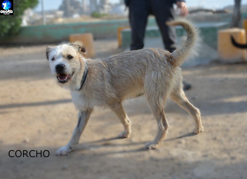 Corcho teilt seinen Zwinger mit zwei Hündinnen, er ist sehr aktiv, verspielt und lieb mit Menschen.