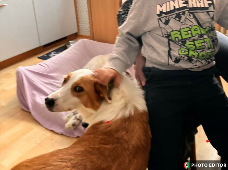 Dana ist neugierig, aufmerksam und bewegt sich sicher im Alltag. Sie läuft zuverlässig an der Leine, kennt den Straßenverkehr und zeigt sich verträglich mit anderen Hunden. Spaziergänge meistert sie entspannt und orientiert sich gut am Menschen.