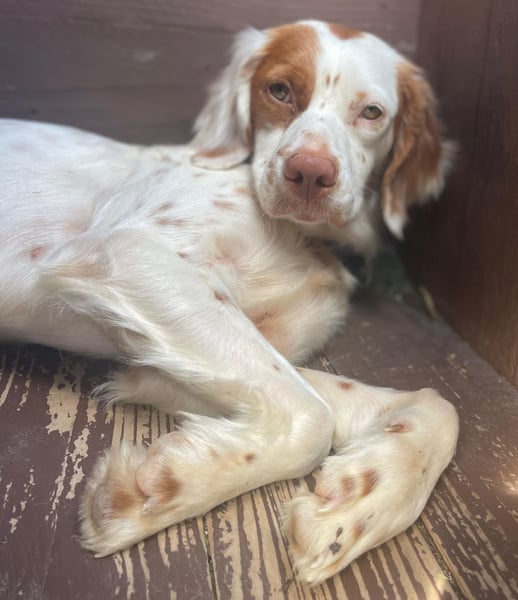 Die junge Bretonenhündin Chloe ist gemeinsam mit ihrer Mutter Grace und ihren Geschwistern in das Tierheim des Tierschutzvereins Pro Animal auf La Gomera gekommen. Für sie beginnt nun ein neuer Lebensabschnitt.