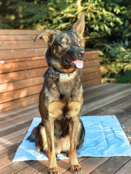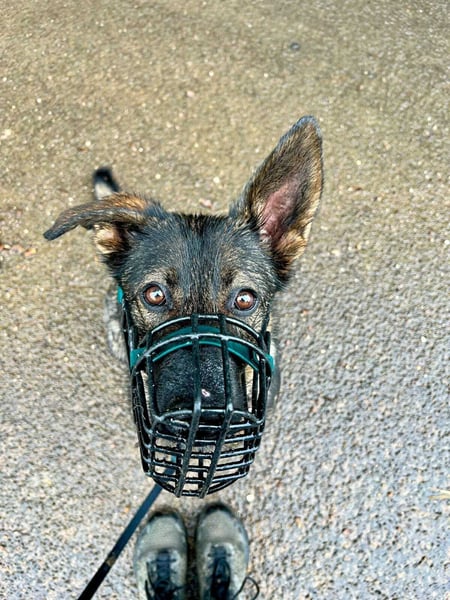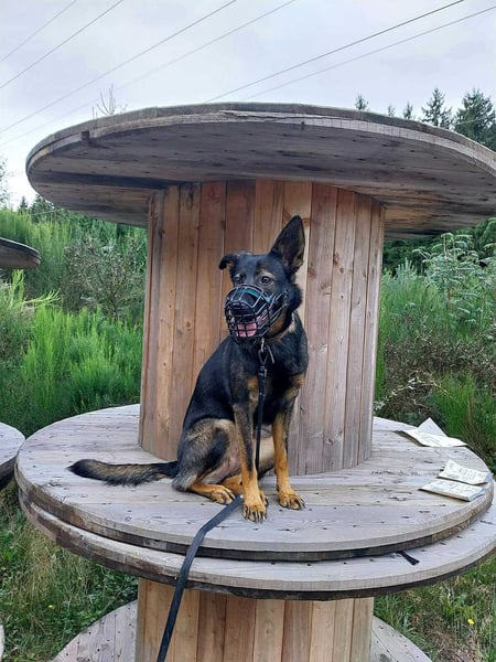 Hope wurde für 100 Euro im Internet gekauft. Nach zwei Monaten sollte sie aus Überforderung wieder über Kleinanzeigen weitergegeben werden. Als Hopes aktuelle Halter von diesem Fall aus ihrem Bekanntenkreis erfuhren, nahmen sie die Hündin in Pflege, trainierten mit ihr und wandten sich für die Vermittlung an uns.