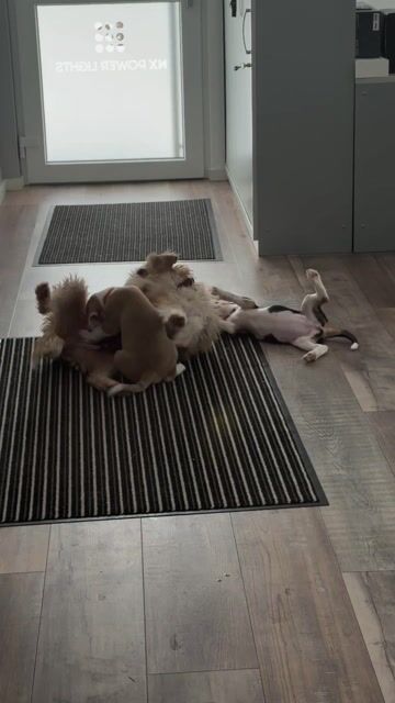 Auf den Fotos sind jeweils zwei Bilder pro Welpe zu sehen, zwischen denen etwa zwei Wochen liegen. So lässt sich gut erkennen, wie schnell sie wachsen und sich entwickeln. Aktuell wiegen sie zwischen 3.600 g und 4.800 g, sind 32–36 cm lang und haben eine Schulterhöhe von etwa 28 cm.