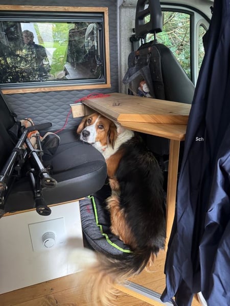 Alltagskommandos (Sitz, Platz, Fuß, Decke) beherrscht und befolgt Iris. Auch das Laufen an der Leine klappt problemlos, nur anfangs ist sie manchmal noch etwas überschwänglich vor lauter Freude. Der Rückruf hingegen sitzt sehr gut und sie lässt sich sowohl mit Leckerchen als auch mit Lob motivieren. Insgesamt zeigt sie sich bei Spaziergängen aufmerksam und unerschrocken. Begegnungen mit Hunden, anderen Menschen, Joggern und Radfahrern meistert sie souverän und entspannt. Auch ersten Pferdekontakt hat sie toll mitgemacht. Autofahren liebt sie und steigt mit Begeisterung ein. Besonders der Platz im Wohnmobil hat es ihr angetan, so wäre sie sicherlich auch eine großartige Campingbegleitung. Auch alleine bleiben klappt ebenfalls problemlos. Aktuell sammelt sie erste Erfahrungen im Mantrailing, was sie mit Begeisterung angeht. Auch am (Berg-)wandern hat dieser Allrounder richtig Spaß!