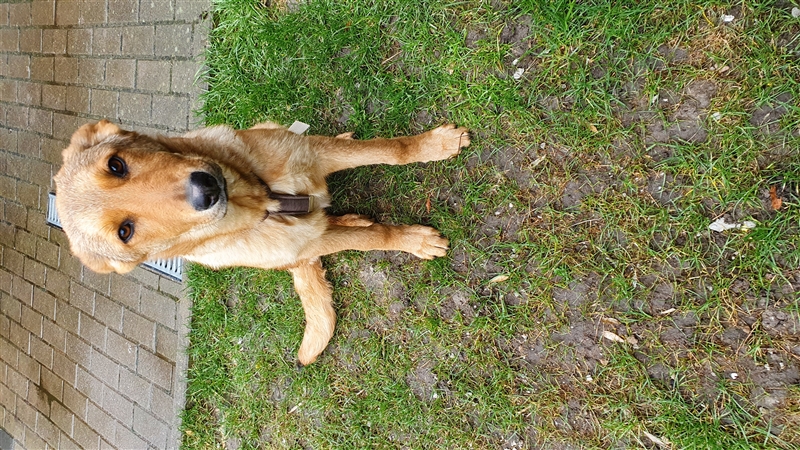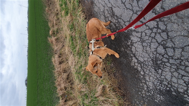 Duke geht gerne spazieren und läuft schon gut an der Leine.