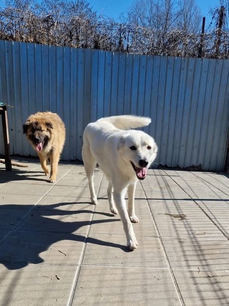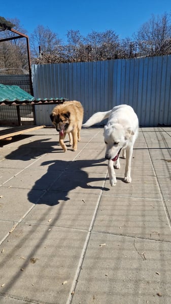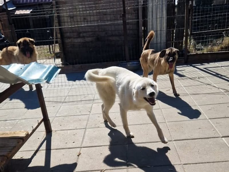 Ilio lebt in seinem Außengehege mit einer Hündin und einem Rüden zusammen, was prima klappt.