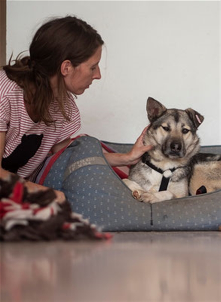 Von da an konnten wir uns jede Woche zu Shiva in Ruhe in den Zwinger setzen. Von gassigängen konnte keine Rede sein, aber immerhin bemerkte sie, dass wenn jemand zu ihr kam, es eigentlich nichts schlimmes hieß. Sie ließ sich anfassen, knurrte nicht aber zeigte auch sonst kaum eine Gemütsregung. So vergingen einige Monate und immer dann, wenn man es am wenigsten erwartet, passieren die kleinen Wunder. Shiva bekam eine Pflegestelle! Wir holten sie aus Bogrov ab und obwohl sie nach wie vor draußen keinen Schritt ging, entspannte sie in der Wohnung mit jeder Minute die verstrich.