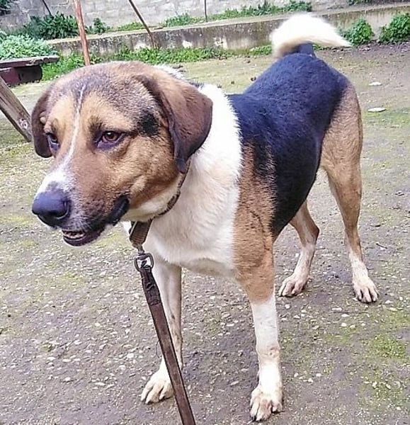 ist schon als kleiner Welpe alleine in den Wälder, die Patras umgeben, gefunden worden. Er war halb verhungert und verdurstet. Margarita hat ihn wieder aufgepäppelt und zu sich in ihre kleine Auffangstation genommen. Dort lebt Kiwi nun seit Jahren ohne jedwede Anfrage in einem Käfig. Dies ist das Schicksal, was die meisten großen Hunde leider teilen. Aber wir geben nicht auf für diesen sehr freundlichen Rüden ein Zuhause zu finden.