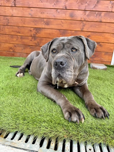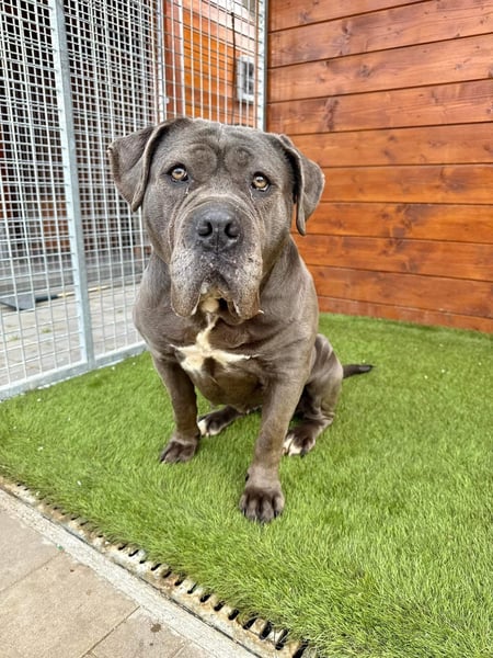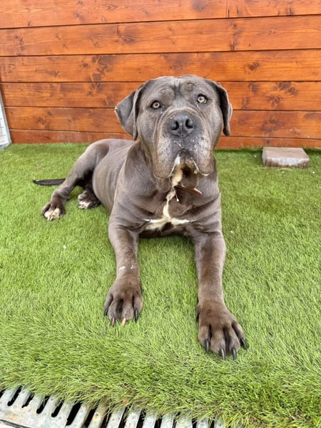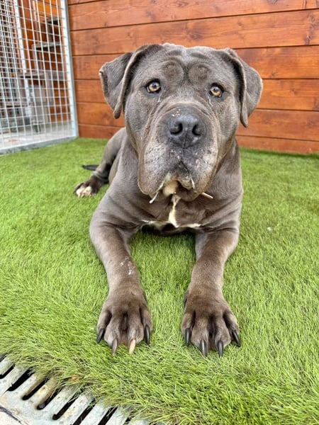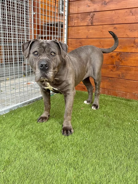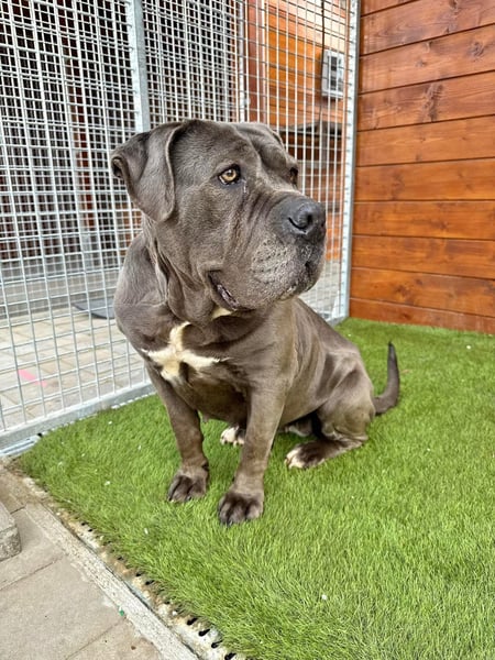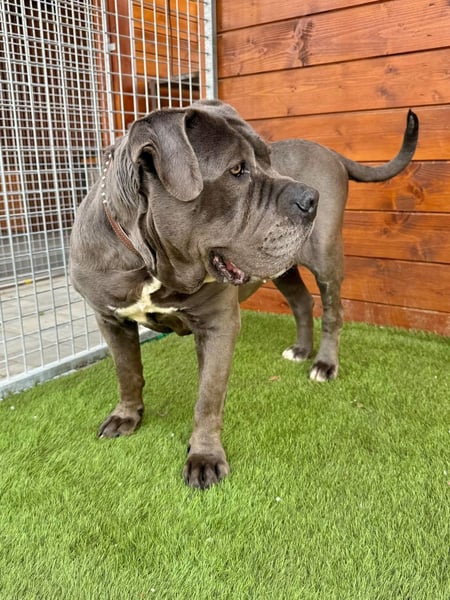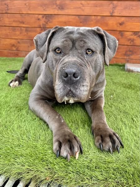 Kamala ist eine Cane Corso Mix Hündin, die aus sehr schlechter Haltung gerettet wurde. Sie lebte isoliert in einem winzigen Zwinger, ohne Spaziergänge, ohne Zuwendung. Trotz dieser traurigen Vergangenheit hat Kamala sich ihr großes Herz bewahrt.