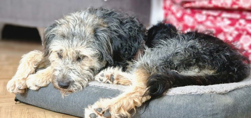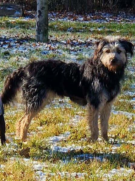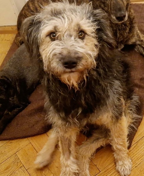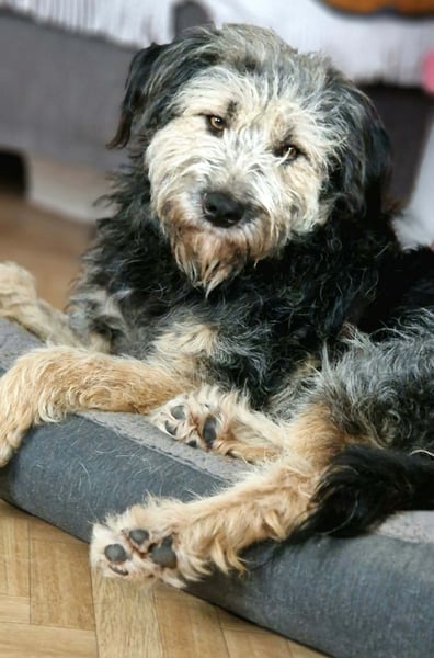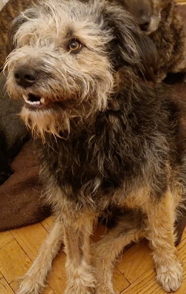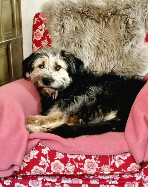 Draußen ist er sehr aktiv, geht gern spazieren und liebt Hundekontakt, im Haus ist er entspannt.