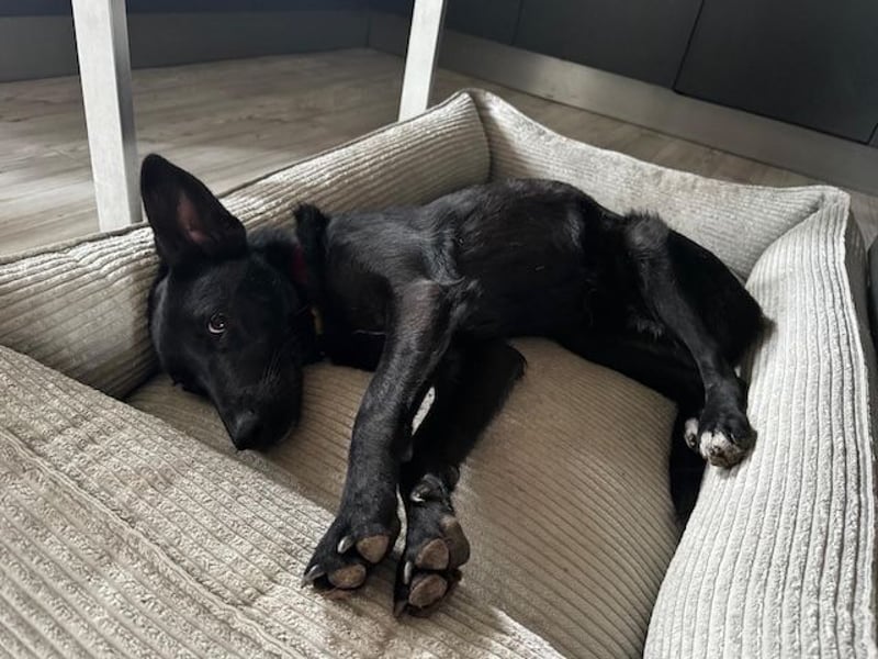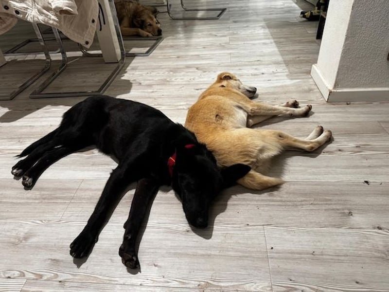 Babsi wurde im Februar 2025 gerettet. Damals war sie noch ein Welpe und lebte auf dem belebten Fischmarkt auf der Straße. Dort wurde sie von einem Auto angefahren und erlitt mehrere Brüche.
