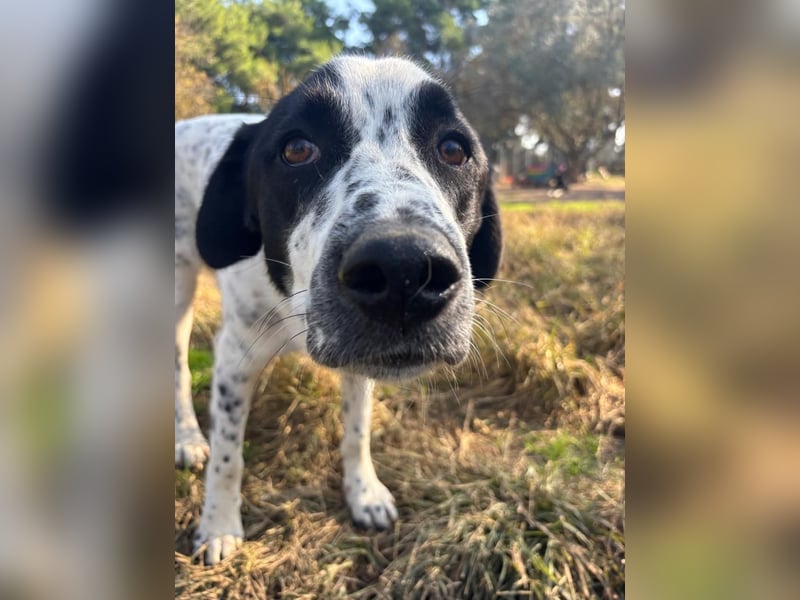 Mit seinem hübsch gefleckten Fell, den sanften Augen und seiner liebevollen Art berührt er sofort jedes Herz. Ausgewachsen wird er etwa 28 kg wiegen, doch noch viel schwerer wiegt sein Wunsch nach einem Zuhause, in dem er in Ruhe ankommen darf und mit Geduld und Zuneigung Vertrauen lernen kann.