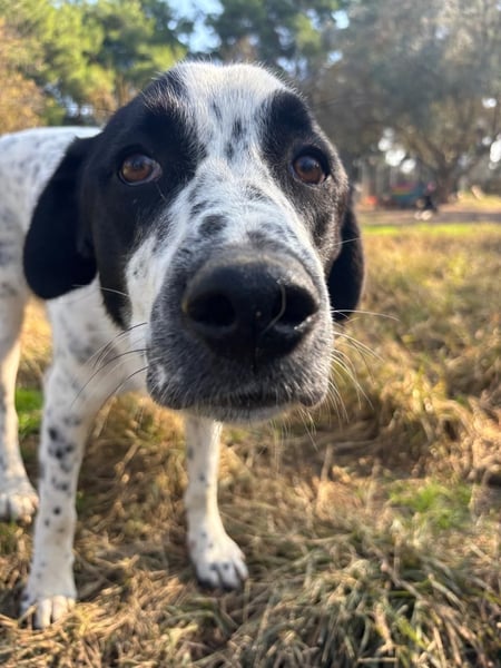 Apollo ist im November 2024 geboren und inzwischen ausgewachsen mit etwa 28 kg. Mit anderen Hunden versteht er sich sehr gut - sie geben ihm Sicherheit und Orientierung. Ein souveräner Ersthund im neuen Zuhause würde ihm daher helfen, schneller anzukommen und Vertrauen zu fassen.
