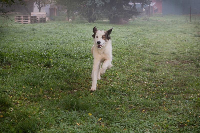 Mit vorsichtigen Schritten erkundet sie ihr neues Umfeld, beobachtet die anderen Hunde und