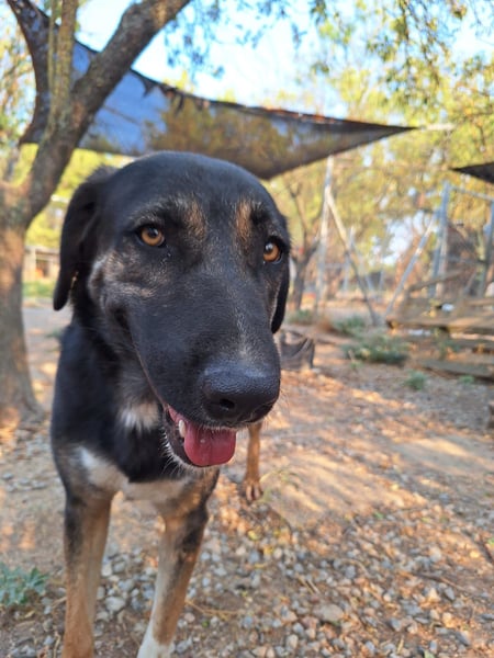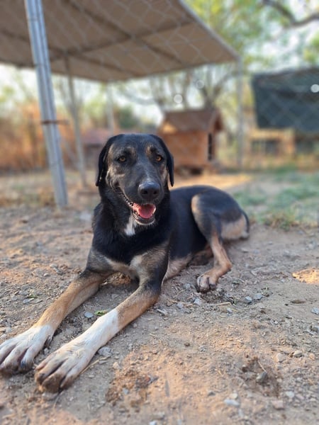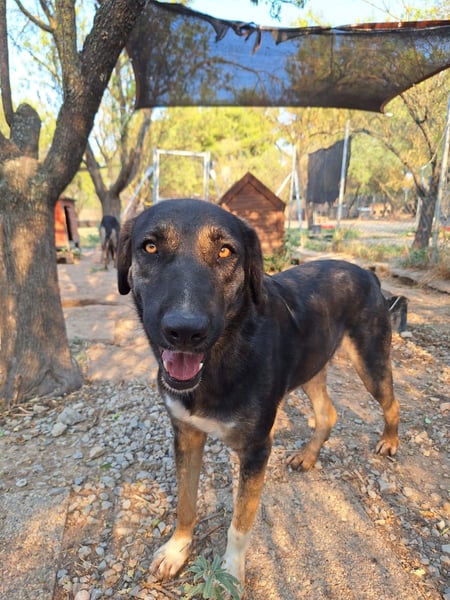 Unsere süße Pepita wurde zusammen mit ihren beiden Schwestern auf einem Feld nahe Hopeland gefunden. Heute hat sie sich zu einer wunderschönen Hundedame entwickelt, die mit ihrem einzigartigen Aussehen sofort alle Blicke auf sich zieht: ihre zarten weißen Pfötchen, die hübsche Zeichnung auf der Brust und ihre goldig schimmernden, bernsteinfarbenen Augen machen sie zu einer wahren Herzensbrecherin.