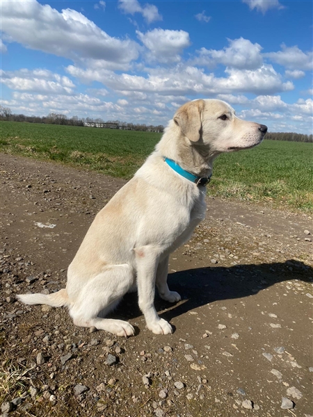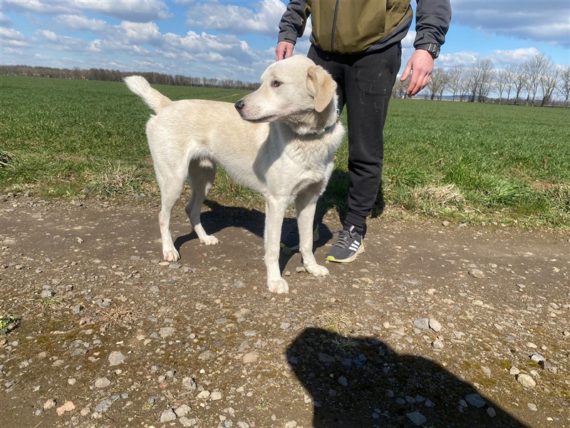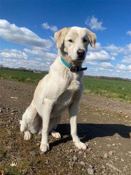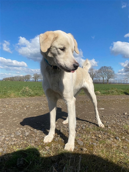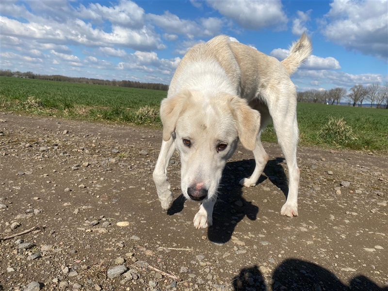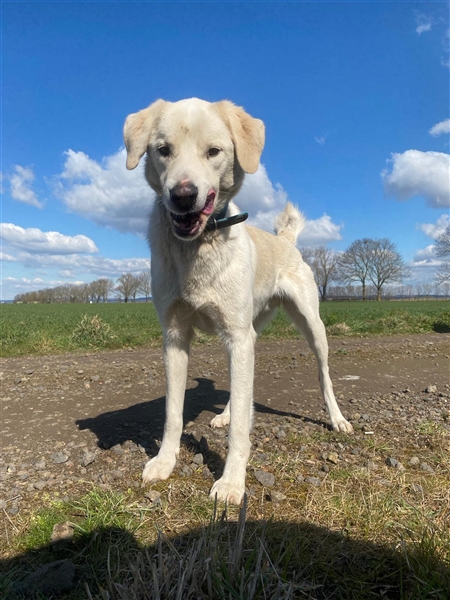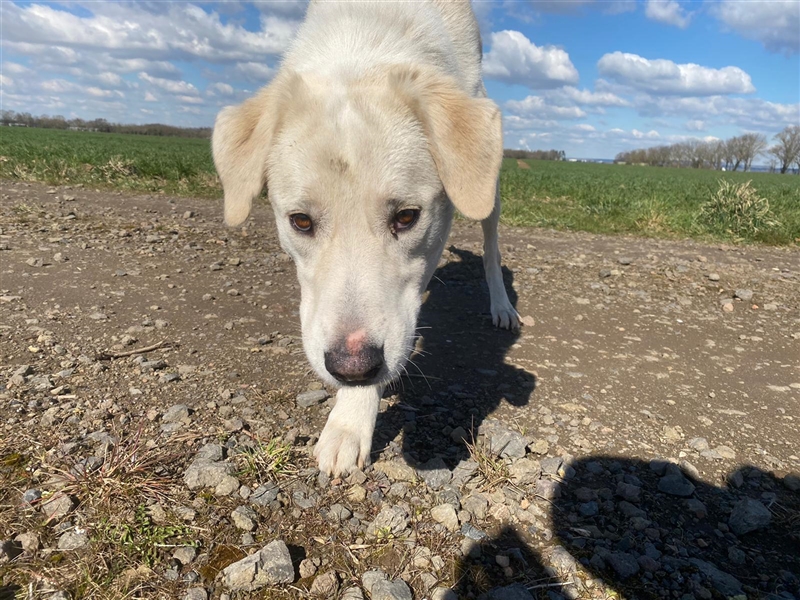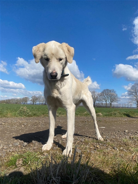 Lucky, 60 cm, Labrador-Herdi-Mix, kastriert ist zwei Jahre und muss sein Zuhause verlassen. Er hat einen starken Charakter und braucht erfahrene Menschen, die ihn auslasten und fordern, er braucht klare Regeln. Er ist auf der einen Seite sehr sehr verschmust, aber neigt auch in gewissen Situationen dazu, seinen Sturkopf durchzusetzen.