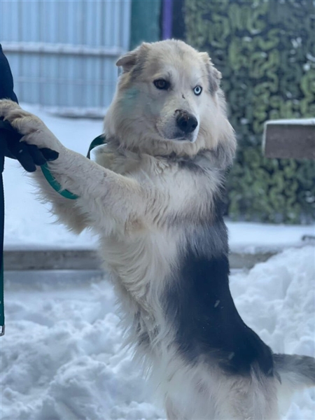 Momentan befindet sich Hugo im Moskauer Tierheim. Wir wissen nichts über seine Vorgeschichte, aber hier zeigt sich der wunderschöne Rüde den Menschen gegenüber aufgeschlossen und freundlich.