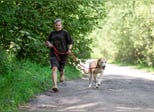 Er läuft gut an der Leine, kann aber anfangs in einem neuen Gebiet oder bei neuen Eindrücken an der Leine etwas ziehen.