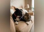 Zu Katzen ist er ruhig und hat keine Probleme mit ihnen.