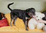 Mit anderen Hunden ist er gut und spielt gerne mit Hündinnen. Mit rüden kann er in streit kommen. Mit Katzen hat er keine großen Erfahrungen, er mag sie nicht so gerne und bellt sie an. Ein Haushalt ohne Katzen währe wahrscheinlich besser für ihn.