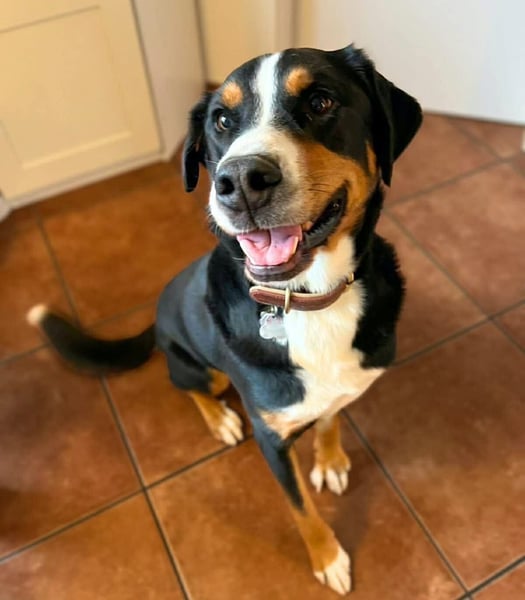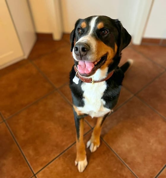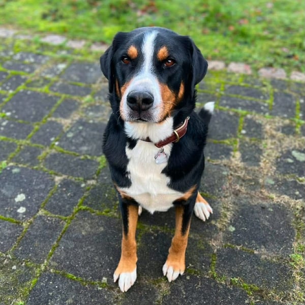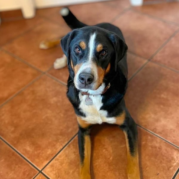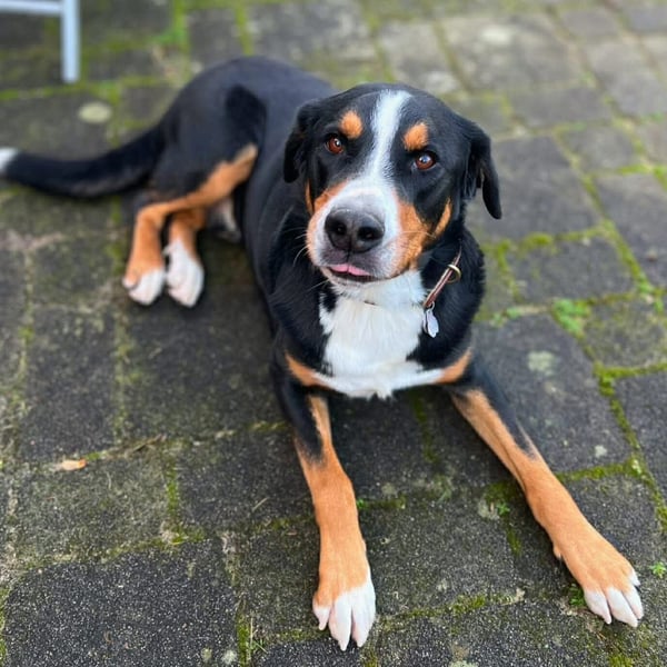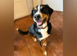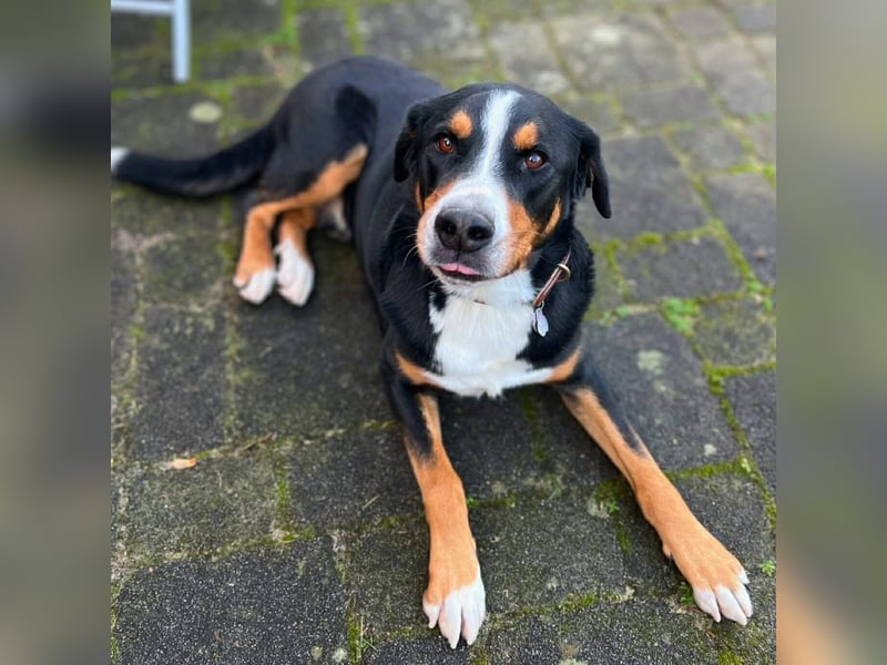 Der vierjährige Schweizer Sennenhund Rocky muss leider in ein neues Zuhause umziehen, weil bei ihm Epilepsie diagnostiziert wurde und er durch die familiäre Situation mit Zweithund und einem Kind zunehmend gestresst ist.
