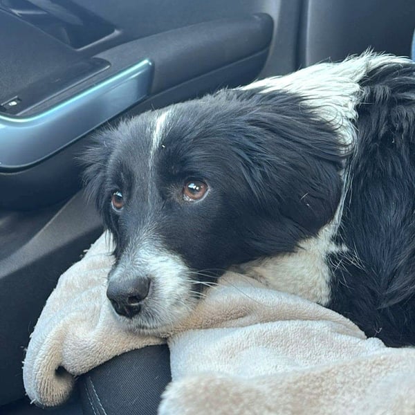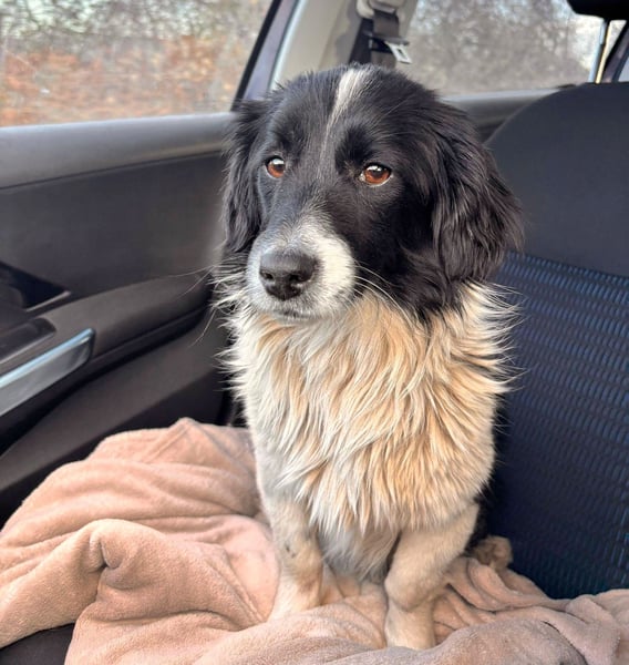 Bimba wurde aus einem fahrenden Auto heraus auf die Strasse geworfen. Eine Bekannte von Carmen hat das beobachtet und sich sofort um die völlig verängstigte junge Hündin gekümmert.