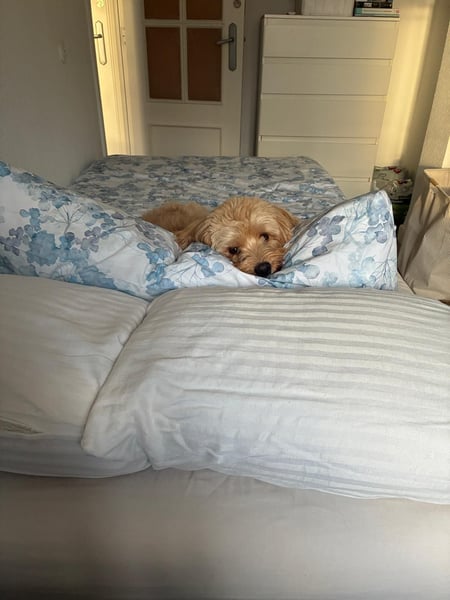 Charlie, geboren im Dezember 2023, ist ein junger, sehr hübscher intakter Cavapoo-Rüde mit ausdrucksstarkem Blick und wunderschönem, nachwachsendem Fell, das allerdings regelmäßige und intensive Pflege benötigt. Den Hundefriseur kennt er bereits und mit entsprechender Erfahrung lässt sich das gut händeln.