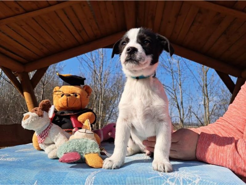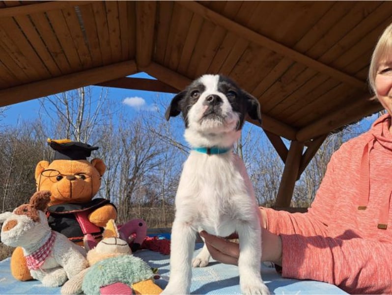 Er ist ein kleiner Sonnenschein, der sofort die Nähe zu Menschen sucht, Küsschen verteilt und jede Streicheleinheit genießt. Sein freundliches Wesen zieht jeden schnell in seinen Bann.