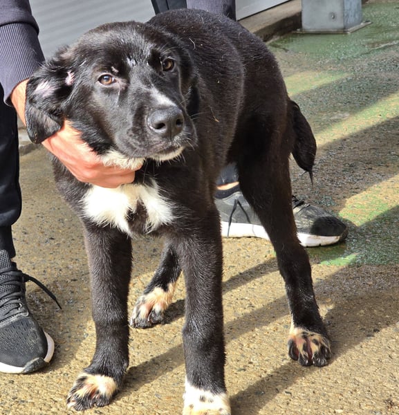 Nun lebt Tessa hier im Welpengehege. Alterstypisch ist sie verspielt, versteht sich mit den Artgenossen, gehört aber eher zu den ruhigen und etwas zurückhaltenden Junghunden.