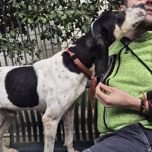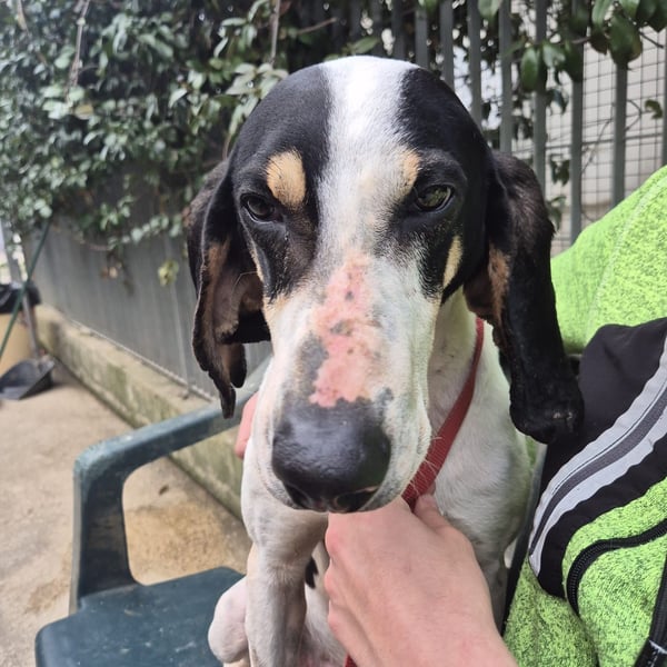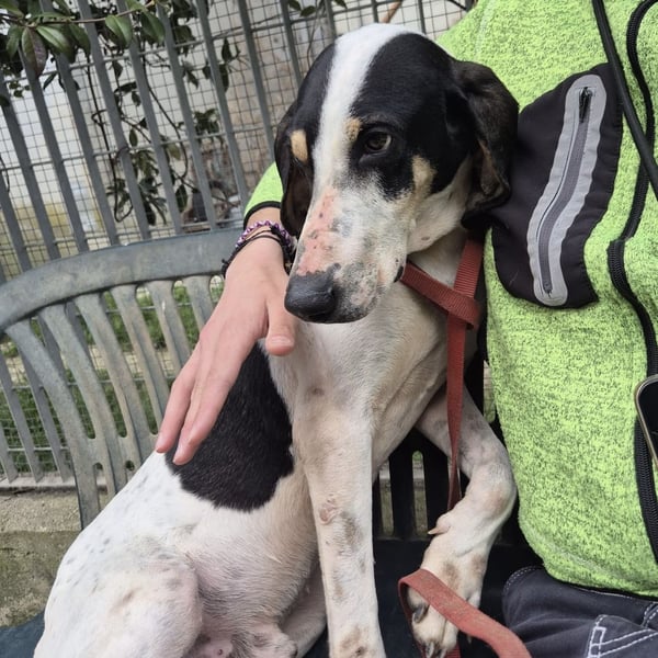 Mark lebte bei einem Jäger und verbrachte sein Leben eingesperrt in einem Zwinger. Darunter hat Mark sehr gelitten. Als Margara von ihm erfuhr, hat sie nicht gezögert und hat ihn sofort zu sich ins Tierheim geholt. Seine Nase war verletzt weil er immer wieder versucht hat aus seinem Gefängnis zu entkommen. Das Tierheim Chieti ist ein sogenanntes offenes Tierheim. Tagsüber leben die Hunde in kleinen Gruppen zusammen und können spielen. Dies fördert das Sozialverhalten der Hunde. Mark blüht langsam auf. Wie schön könnte es erst in einer richtigen Familie sein. Mark ist gesellig und ausgeglichen. Er hat einen offenen und freundlichen Charakter und kann auch schon gut an der Leine gehen. Er sucht den Kontakt zu den Menschen und benimmt sich teilweise noch wie ein Welpe, als müßte er viel nachholen.