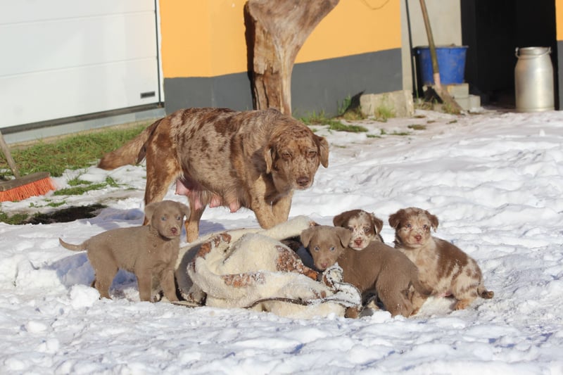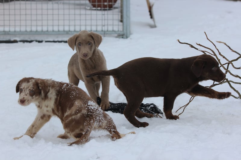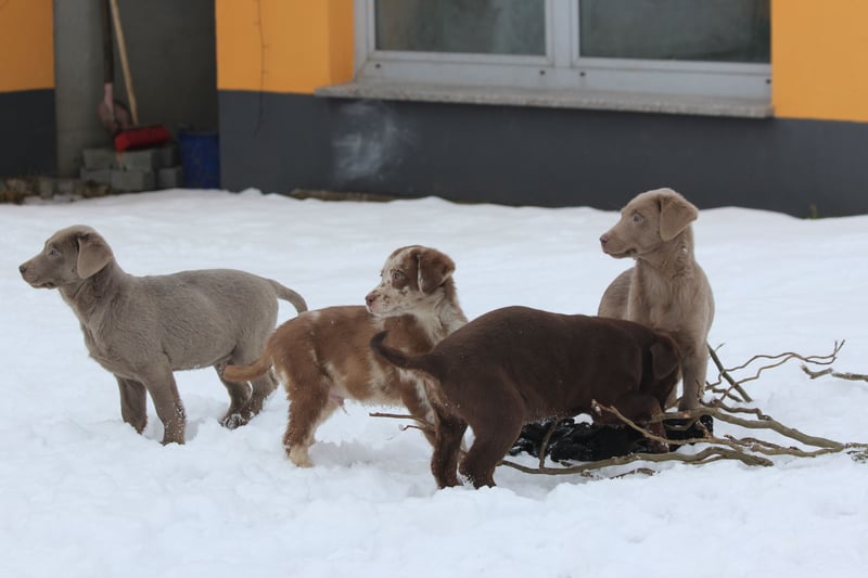 Aussiedor Welpen der 4. Generation, also Labrador mit nur noch wenig Australian Shepherd Anteil