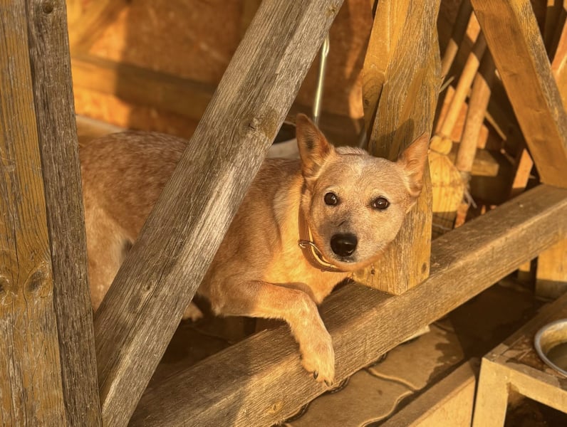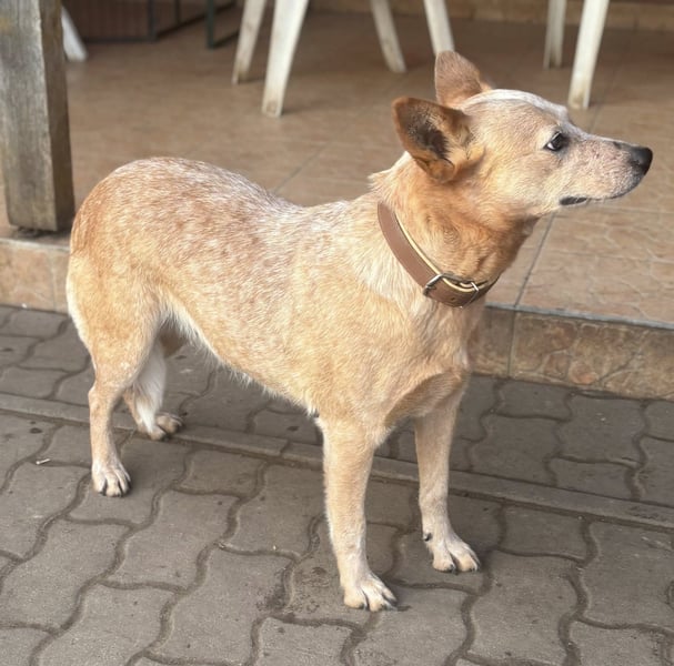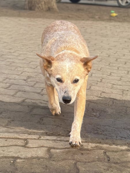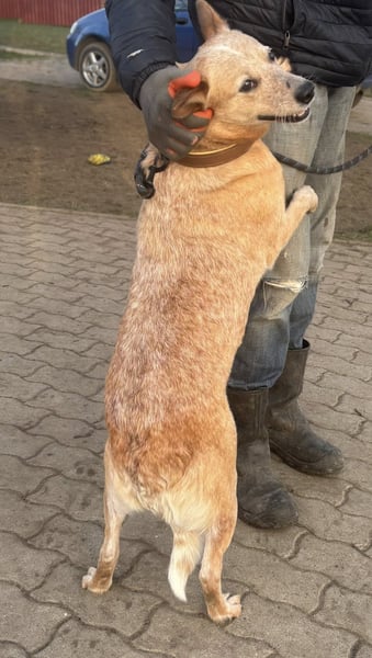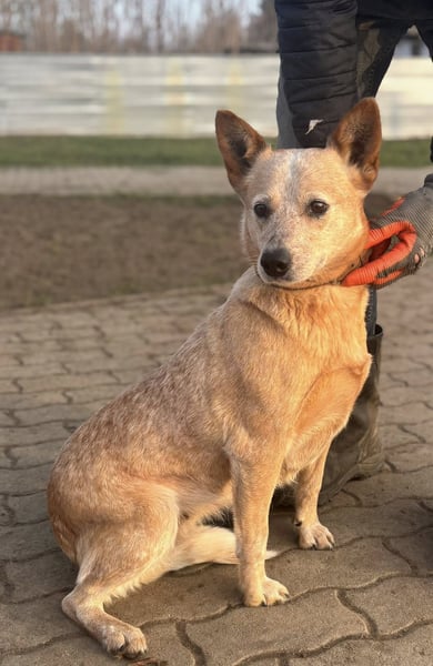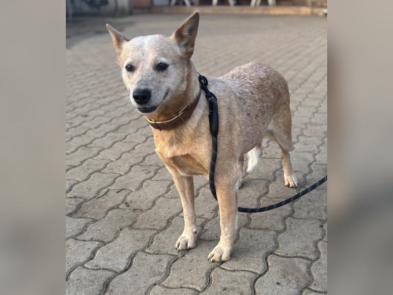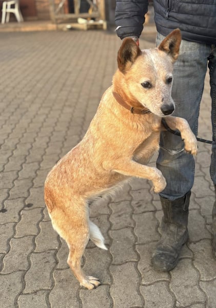 Kelly ist eine Australian-Cattle-Dog-Hündin mit einer Schulterhöhe von etwa 48 cm, geboren am 16.05.2023. Sie stammt aus einer Vermehrerauflösung und hatte keinen leichten Start ins Leben. Umso schöner ist es zu sehen, wie offen und freundlich sie den Menschen begegnet.