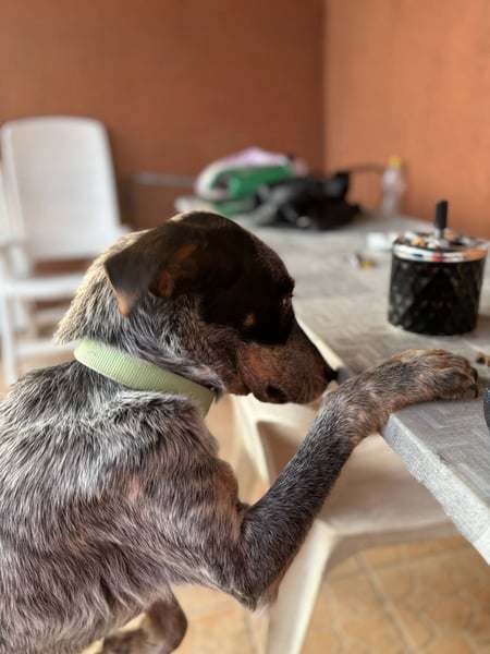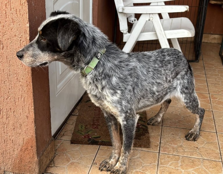 Anton ist ein Australian-Cattle-Dog-Rüde mit einer Schulterhöhe von etwa 50 cm, geboren am 22.01.2022. Er stammt aus einer Vermehrerauflösung und hat in seinem bisherigen Leben leider wenig Sicherheit und Zuwendung erfahren. Diese Vergangenheit hat ihn schüchtern gemacht, doch sie konnte ihm nicht seine Sanftheit nehmen.