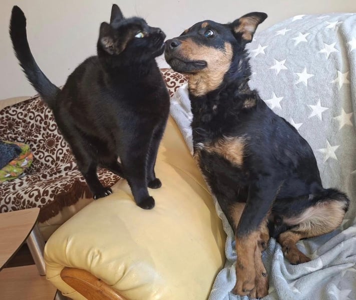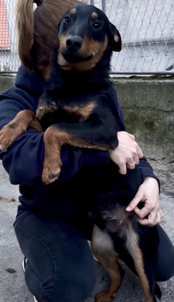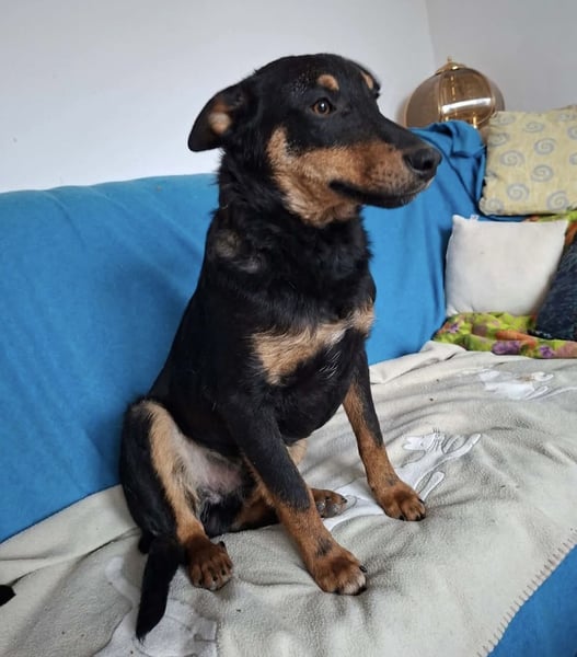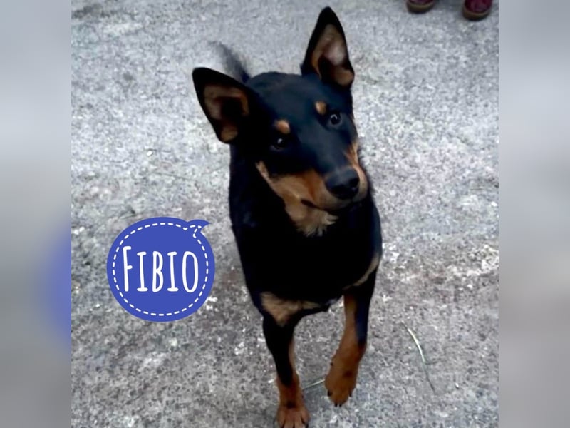 Fibio ist ein Bub, er ist ca. 9 Monate alt (geb. 15.06.2025), wiegt ca. 14,5kg und ist ca. 48cm groß, vermutet wird ein Australian Kelpie Mischling.