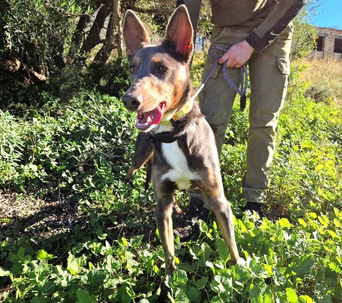 Sobald Ajes das Tierheim für einen Spaziergang verlassen kann, zeigt er sich als ein lustiger, lernwilliger Begleiter, der Streicheleinheiten genießt.