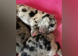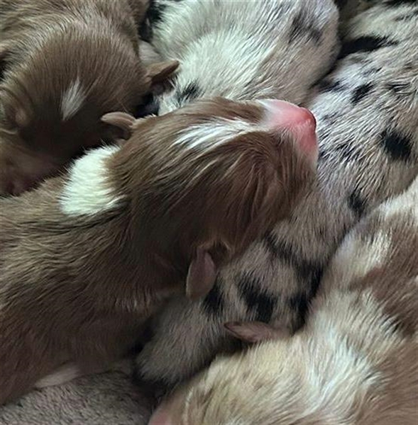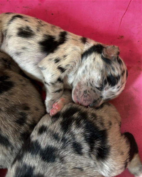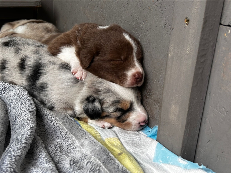 Er ist ein Blue Merle ohne Kupfer mit zwei blauen Augen!