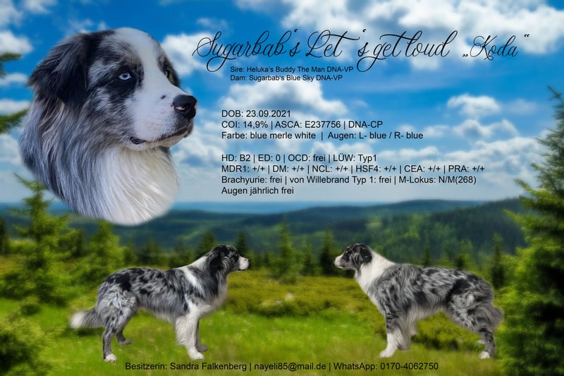 Australian Shepherd, Deckrüde, blue Merle bi, blaue Augen, Aussie, Rüde, ASCA