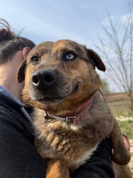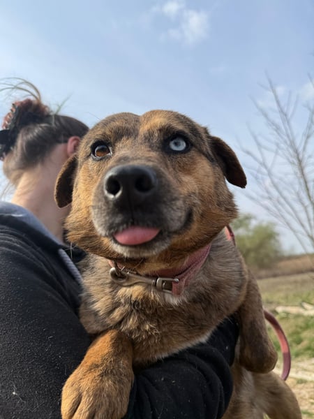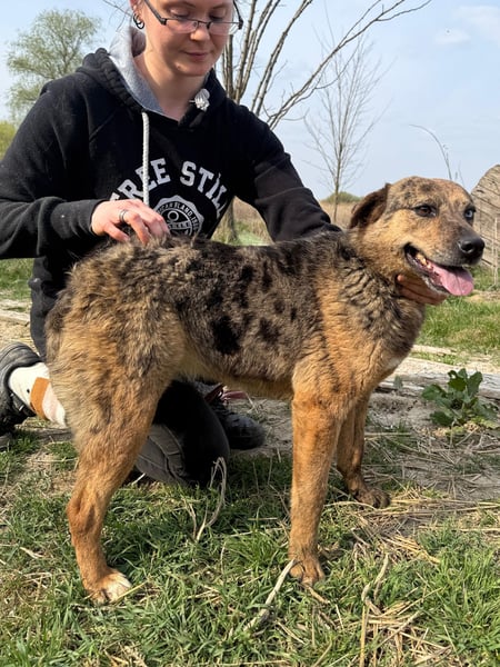 Rezeda ist eine aufgeschlossene und neugierige Hündin, die nur darauf wartet endlich die Welt entdecken zu dürfen. In komplett neuen Situationen kann sie im ersten Moment ein wenig zurückhaltend sein. Das liegt einfach daran, dass sie vieles noch nicht kennt. Grundsätzlich ist sie jedoch sehr freundlich, offen und neugierig, und sobald sie Vertrauen gefasst hat, zeigt sie ihre lebhafte Seite. Bei Rezeda vermuten wir Anteile eines Australian Shepherds, was bedeutet, dass sie sowohl geistige als auch körperliche Auslastung braucht. Ein kurzer Spaziergang um den Block wird ihr nicht reichen – sie möchte Aufgaben übernehmen, beschäftigt werden und gemeinsam mit ihren Menschen arbeiten. Daher wünschen wir uns Menschen, die sich bewusst für einen aktiven Hund entscheiden und sich vorher über die Rasseeigenschaften eines Australian Shepherds informieren. Rezeda muss noch alles vom Hundeeinmaleins lernen und es wird Geduld und Training brauchen, bis sie sicher ankommt. Mit Ruhe und liebevoller Führung wird sie das aber toll meistern, denn sie ist offen, motiviert und bereit für ihr neues Leben! Mit anderen Hunden ist Rezeda gut verträglich, sie genießt den Kontakt zu Artgenossen und kann gerne als Zweithund gehalten werden.
