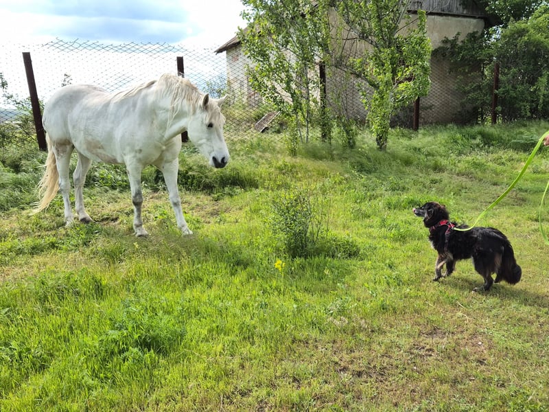 Mit ihren Artgenossen ist Berta gut verträglich, aber man merkt, dass sie aufgrund ihrer Vergangenheit auf eine größere Individualdistanz achtet. Auch Katzen gegenüber verhält sich die Hundedame offen und freundlich.
