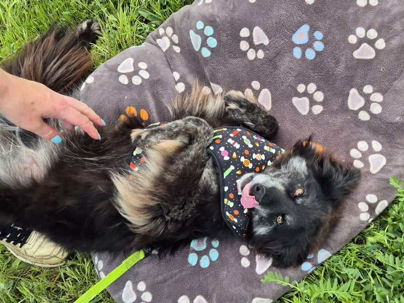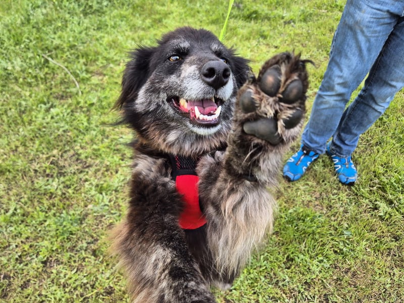 Bei unserem Besuch in Rumänien lernten wir Berta als freundliche, aufgeschlossene und menschenzugewandte Hündin kennen, die sich sehr über die Abwechslung, die unsere Anwesenheit bot, freute und die seltenen Streicheleinheiten genoss. Wir gehen davon aus, dass unter Berta’s Vorfahren Hütehunde waren, denn die aufgeweckte Hundedame ist sehr intelligent und bemüht, uns Menschen zu gefallen. Das Laufen an der Leine hat sie in Windeseile gelernt und schnell Gefallen an Ausflügen ins Grüne gefunden. Daher sollte Berta’s Familie Lust und Zeit haben, sich mit der pfiffigen Hündin zu beschäftigen und sie sowohl körperlich als auch geistig sinnvoll auslasten, damit sie eine tolle Wegbegleiterin werden kann.