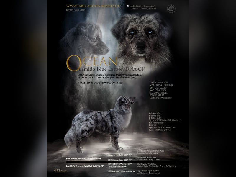 Das vollständige Pedigree ist auf Aussie.de oder unserer Homepage zu finden.