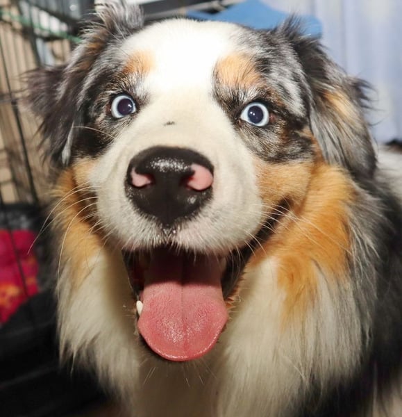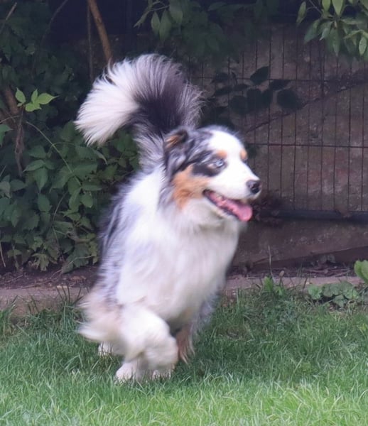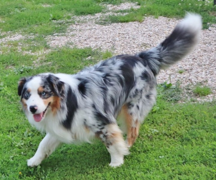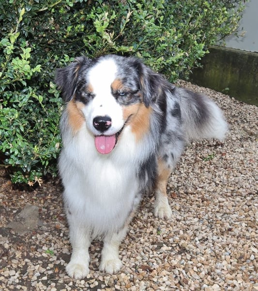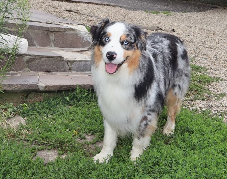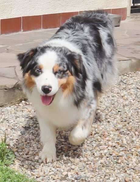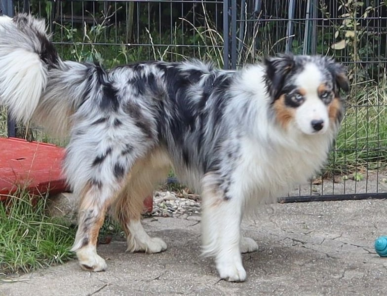 Grösse: 54,5 cm, Gewicht: 25 kg, Farbe: blue merle, Augenfarbe: blau