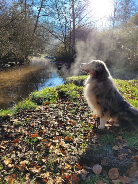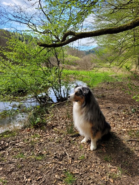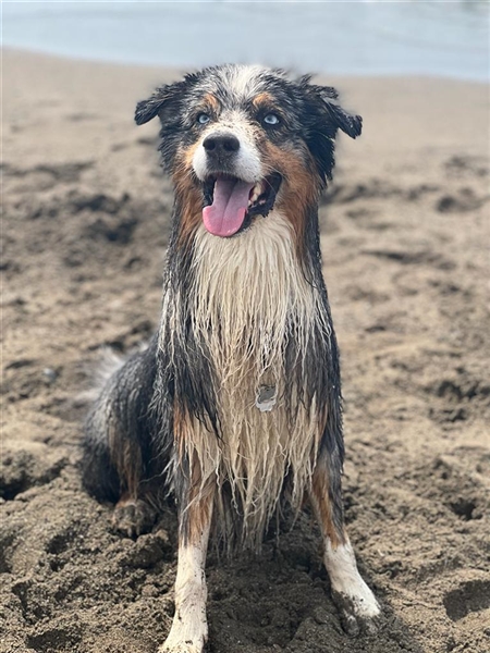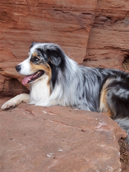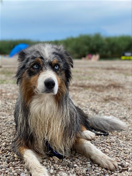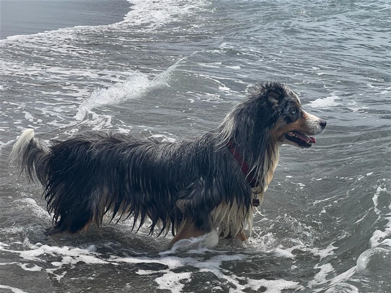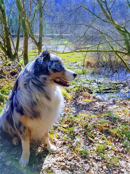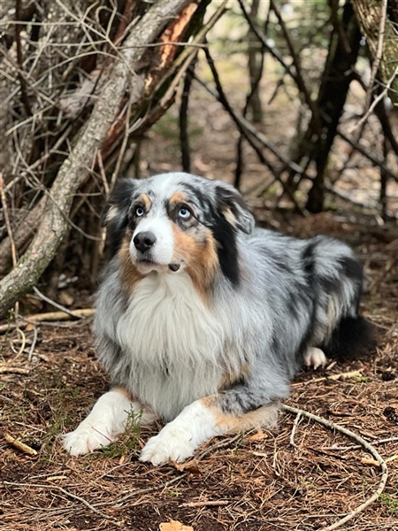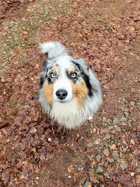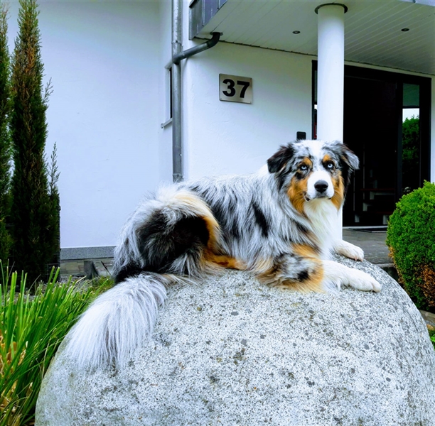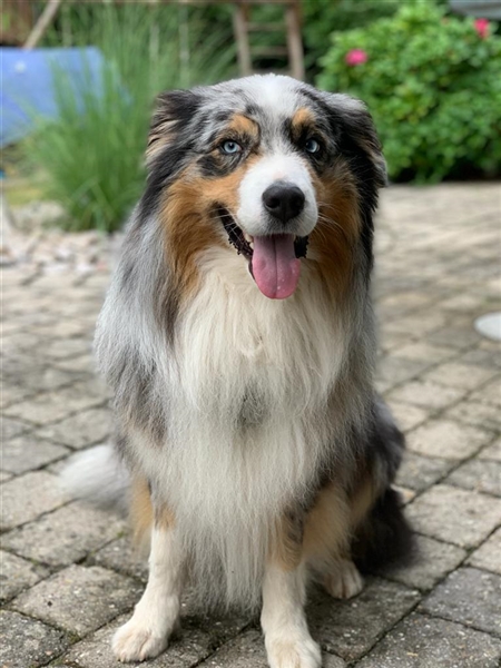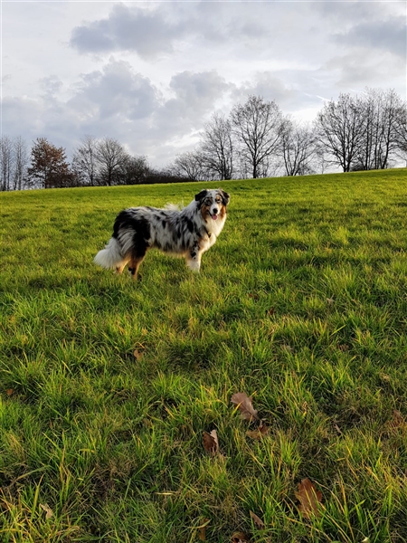 Unser Australian Shepherd Rüde (Blue Merle, 8 Jahre alt) steht gesunden Hündinnen zum Decken zur Verfügung.