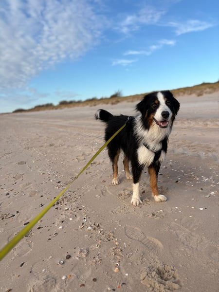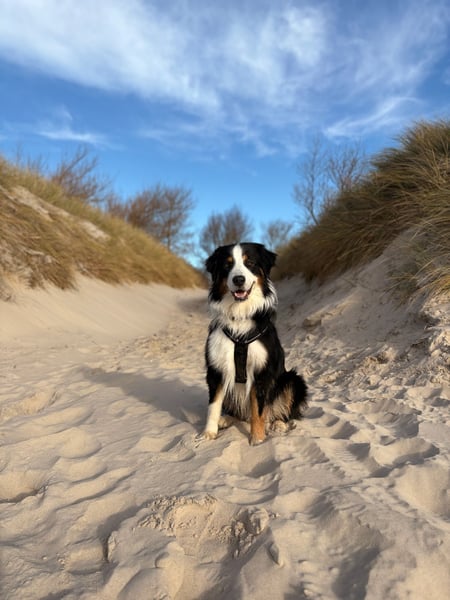 Koda ist ein freundlicher, ausgeglichener und sehr familienbezogener Rüde. Er ist aktiv, verspielt und besitzt den typischen liebevollen Charakter eines Australian Shepherds. Im Alltag zeigt er sich sehr sozial, menschenbezogen und verträglich.