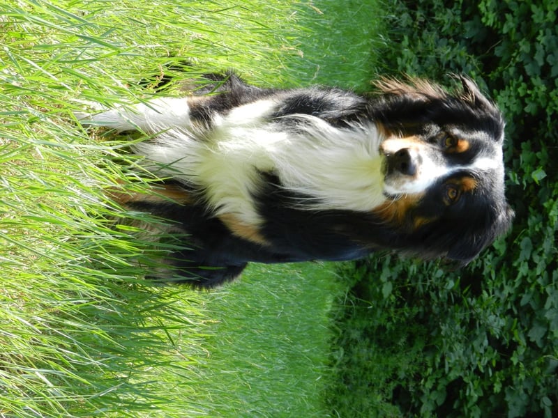 Er ist 3 Jahre alt, ein bildschöner Black Tri und mit ca. 50–60 cm bereits ausgewachsen. Seit dem Welpenalter lebt er bei uns in der Familie und ist ein fester Bestandteil unseres Alltags.