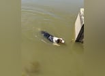Läuft sehr artig als Reitbegleithund am Pferd und ist jederzeit folgsam und abrufbar.